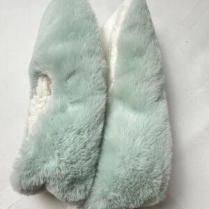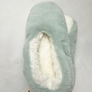 NWT - Cozy Green and White Fuzzy Slippers with grippers