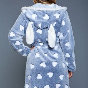 New with tags! Comfy, cozy And fun ultra soft heart print long sleeve mid lengthy robe with playful bunny ear hoodie.