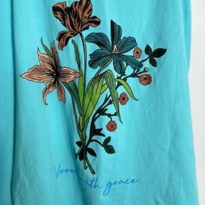 Blue Flowers with saying “bloom with grace” Size L 95% rayon 5% spandex New with tags No damages