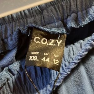 NWT Cozy Soft Blue Cotton Wide Leg Lounge Pants XXL elastic waist front pocket