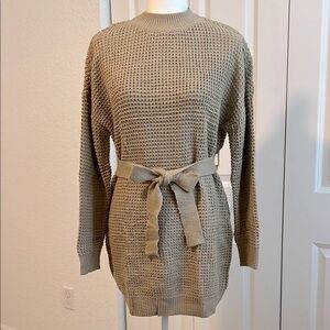 NWT Cozy Waffle Knit Crewneck Sweater Dress with Belt Tan Size Small