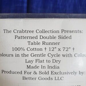 NWT Crabtree Cotton Table Runner. Double Sided Black & White 100% Cotton Toile. 72x12" 18th Century French Floral Toile Revival. Outstanding Crabtree Quality.