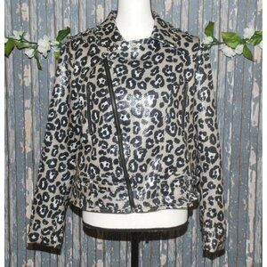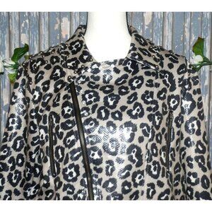 NWT Crazy Train Leopard Print Moto Jacket Size M Zip Up Studded Vegan Leather