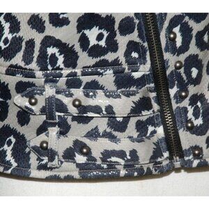 Rock your style with this NWT Crazy Train Leopard Print Moto Jacket. With its gray hue, studded vegan leather style, and zip-up design, it's perfect for casual outings or club wear.
