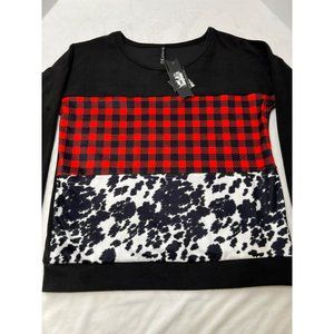 We're moooving on up in this CT one of a kind pullover! Buffalo plaid and cow print make a fun combo for the Christmas season.