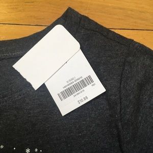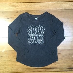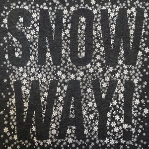 Features: Long sleeve gray T-shirt with "snow way" and white snowflake print on the front; soft and comfortable; great for the holidays!