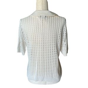 NWT sweater cardigan, cream knit cardigan, mesh button-up top, short sleeve cardigan, lightweight sweater, casual chic, versatile layering piece, women’s cardigan, size L, new with tags, comfortable cardigan, breathable knit sweater.