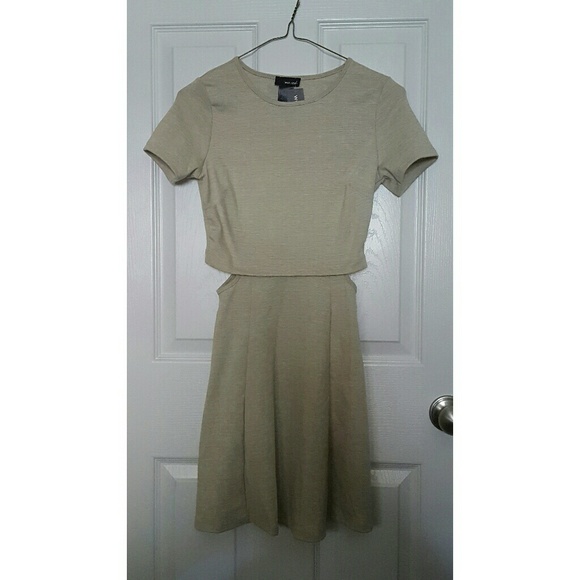 Cream skater dress with cutouts on each side.