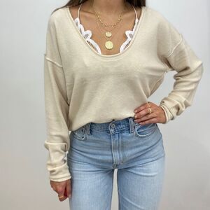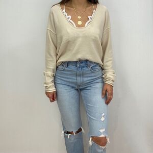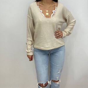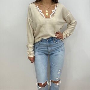 NWT Cream Long Sleeve Pullover Sweater with Scoop Neck