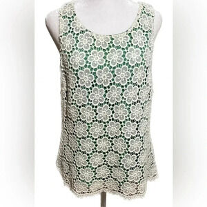 NWT Cremieux green and white crochet sleeveless top