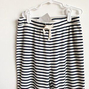 Striped jogger pants for girl (white and navy stripes), ribbed fabric, 95% cotton, 5% elastane. New with tags. Smoke free home without pets.
