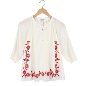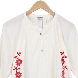NWT Crewcuts Girls Embroidered Popover Dress In Airy Gauze Red Ivory Size 6