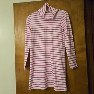 Crewcuts Pink & White Striped Long Sleeved Turtleneck Knit Dress Size 12 - NWT. It is 92% cotton and 8% elastane. The measurements from armpit to armpit is 18 inches and from shoulder to hem is 33 1/4 inches. The style # is AT498.