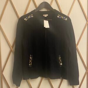 NWT Crewcuts full zip navy wool cardigan. Jewel details on shoulders and pockets. Size XL