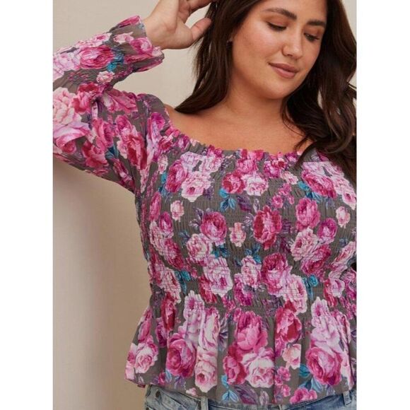 NWT Crinkle Chiffon Smocked Waist Off-Shoulder Crop Top Size 5