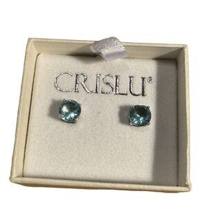 NWT Crislu 2CTTW solitaire blue crystal post earrings in sterling silver