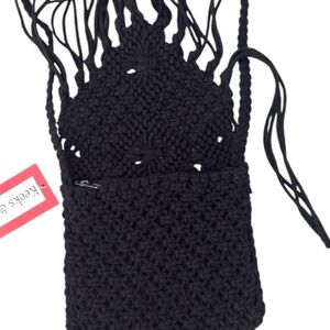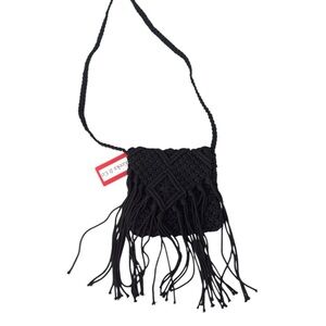 NWT Crochet Bag with Zipper Closure. Boho Festival Bag in Black