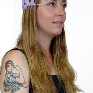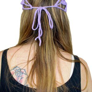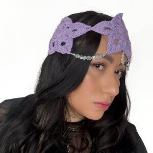 NWT Crochet Purple Handmade Star Headband Crystal Beaded Festival Rave Boho
