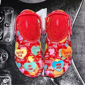 Give your little sweethearts the fabulously functional Crocs Lined Sweethearts. These sweet clogs are lined with polyester to keep little feet comfortable throughout the day. Finished with a thermoplastic EVA outsole, the Crocs Lined Sweethearts is supportive of all preschooler adventures.
