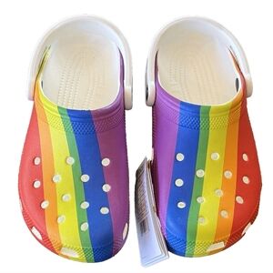 NWT Crocs Classic Clogs Womens Mens 13 Rainbow Stripe Strap Unisex Colorful New