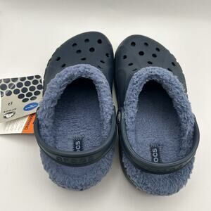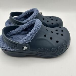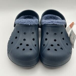 NWT Crocs Kids Baya Fuzzy Lined Navy Blue Clog Sz J2 Junior 2 Children New