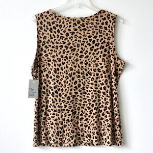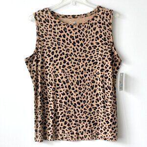 NWT Croft & Barrow 100% Cotton Tan Cheetah Print Classic Tank Shirt Large Petite