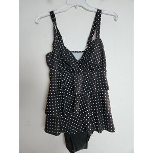 NWT Croft & Barrow Black White Polka Dot Tiered "Tummy Slimmer" 1 Piece Swimsuit size 10,