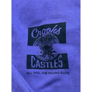 Brand new with tags bold purple Crooks & Castles joggers featuring the signature All Hail the Ruling Elite graphic. Crafted from a soft cotton-blend fleece for comfort and warmth, with a relaxed fit perfect for streetwear looks or lounging.