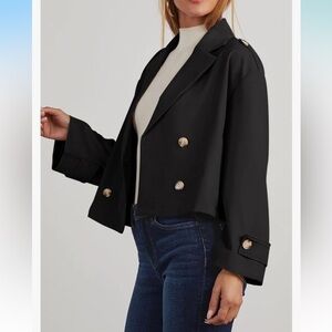 NWT Cropped Trench Coats Double Breasted Blazer Long Sleeve Lapel with Pockets