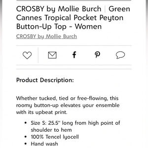 NWT Crosby by Mollie Burch XS Cannes Tropical Peyton Button Up Top Hawaiian New
