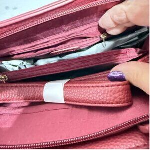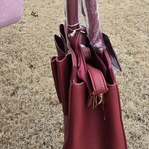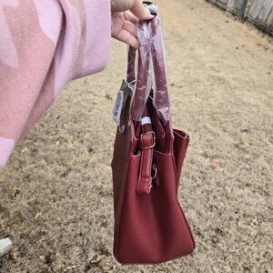 NWT Crossi Burgundy Red Bow Handbag With Extra Crossbody Shoulder Strap BONUS!