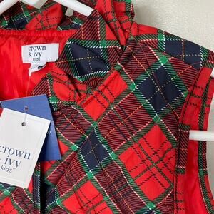 NWT Crown & Ivy Girls Plaid Puffer Vest Tartan Christmas Holiday Vest