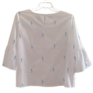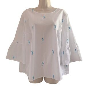 NWT Crown & Ivy Lightweight Blouse with Embroidered Seahorses Bell Sleeves PXL