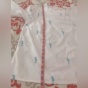 NWT Crown & Ivy Lightweight Blouse with Embroidered Seahorses Bell Sleeves PXL