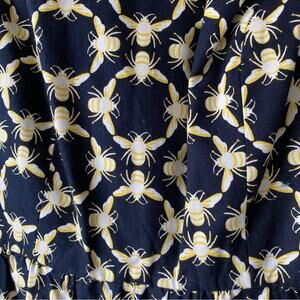 - Bumblebee medallion print on dark navy blue base with yellow trim