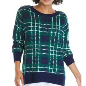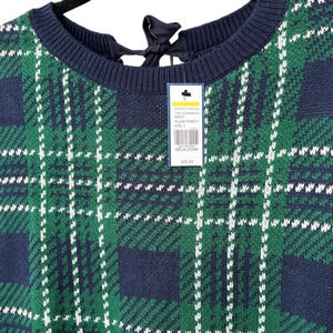 NWT Crown & Ivy Navy Plaid Holiday Party Ribbon Tie Sweater Size Small