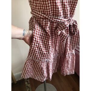 NWT Crown & Ivy One Shoulder Gingham Midi Dress Size 14 Red White Belted Lined