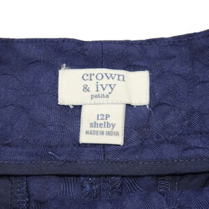 NWT Crown & Ivy Petite Navy Blue Scalloped Textured Shelby Shorts, size 12P