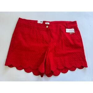 NWT Crown & Ivy Red Shelby Textured Scallop Hem Shorts Womens Size 22W