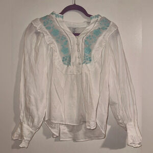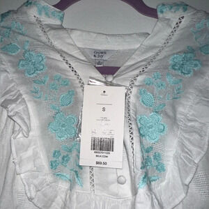 NWT Crown & Ivy White Blouse with Blue Trim Size Small