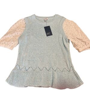 NWT Crown & Ivy knit sweater vest shirt w/ attached eyelet lace puff sleeves Sm