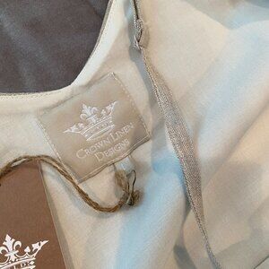 NWT Crown Linen Designs Spaghetti Strap Midi linen dress size Large. This dress is fully lined with 2 size slits and the color is Flax. The bust measures 42"