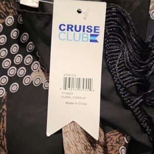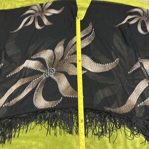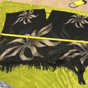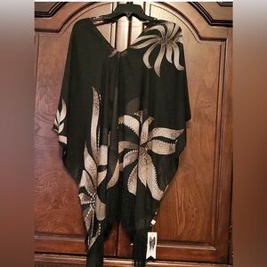 NWT Cruise Club sheer black floral poncho/cover-up with fringe One Size