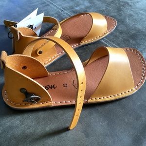 Brand new, gorgeous mustard leather Crupon Febo barefoot sandals size 37. Fits true to size.