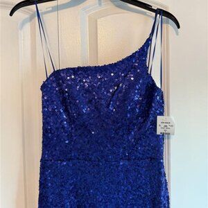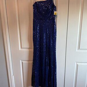 NWT Crystal Doll Juniors' One-Shoulder Floral-Sequin Gown