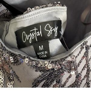 NWT Crystal Sky grey silver sequin homecoming short spaghetti strap dress size m