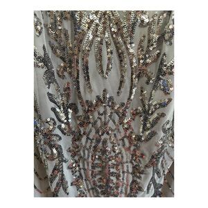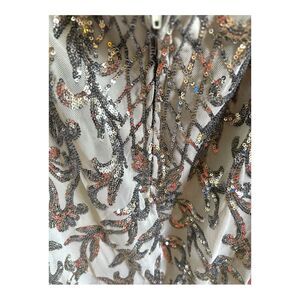 NWT Crystal Sky grey silver sequin homecoming short spaghetti strap dress size m lined adjustable back strap smoke free dog friendly home stretchy formal prom homecoming