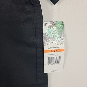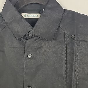 NWT Cubavera Men's Classic-Fit Linen Guayabera Short-Sleeved Black Shirt Size S