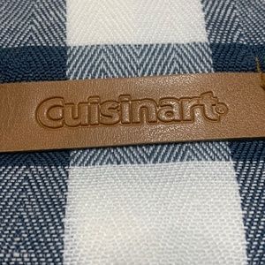 This is a brand new never opened Cuisinart Blue & White Checkered Tablecloth that measures 60 inches by 84 inches. It is Easy Care, Wrinkle Resistant and Machine Washable as you can see from the tags. The fabric is 51% Cotton and 49% Polyester. Awesome inexpensive table decoration that you can throw in the washing machine. Although I am just getting started here on Poshmark, I have 100% Positive Feedback on another online platform so buy with confidence! Thanks for your consideration!