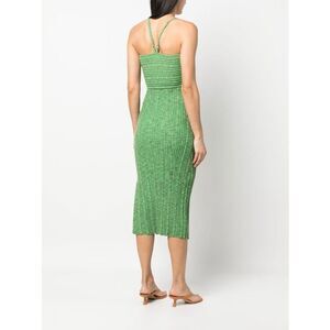 green stretch-design ribbed knit gathered neckline cut-out detailing adjustable shoulder straps side slit below-knee length